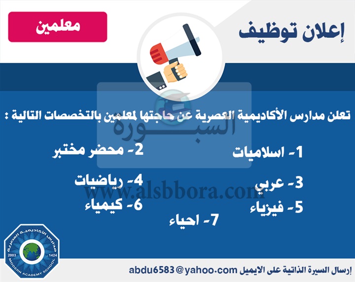 تعلن كبري المدارس السعودية عن وظائف جديدة للمعلمين والمعلمات وذلك وفقا لنص الإعلان التالي:-
