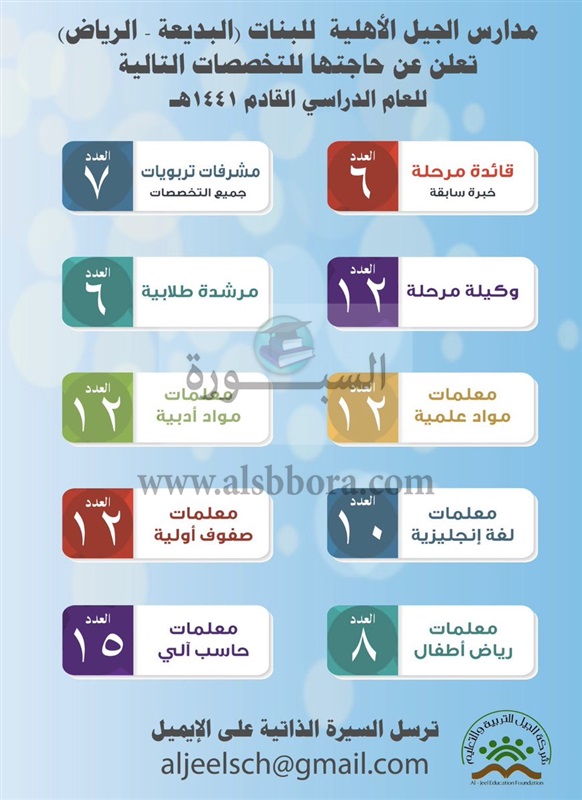 تعلن مدارس الجيل السعودية عن وظائف جديدة للمعلمين والمعلمات وذلك وفقا لنص الإعلان التالي:-