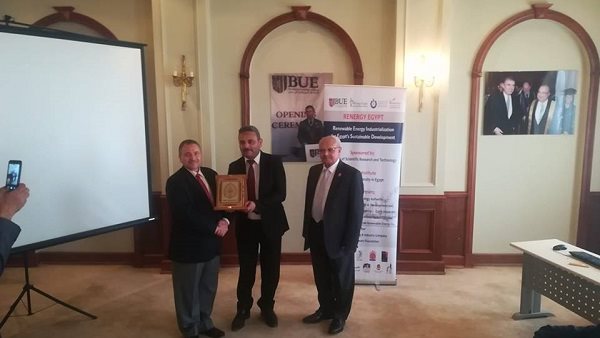 كرمت جامعة الطفیلة الاردنیة والجامعة البریطانیة بالقاھرة المھندس حاتم الرومى رئیس مجلس إدارة شركة تربل إم وذلك خلال ورشة عمل عن الطاقة الجدیدة والمتجددة بالجامعة البریطانیة بالقاھرة.