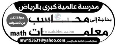 تعلن مدارس الرياض السعودية عن وظائف جديدة للمعلمين والمعلمات وذلك وفقا لنص الإعلان التالي:-