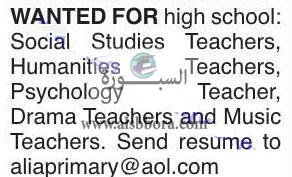 تعلن مدرسة خاصة في البحرين عن وظائف جديدة للمعلمين والمعلمات وذلك وفقا لنص الإعلان التالي:-
