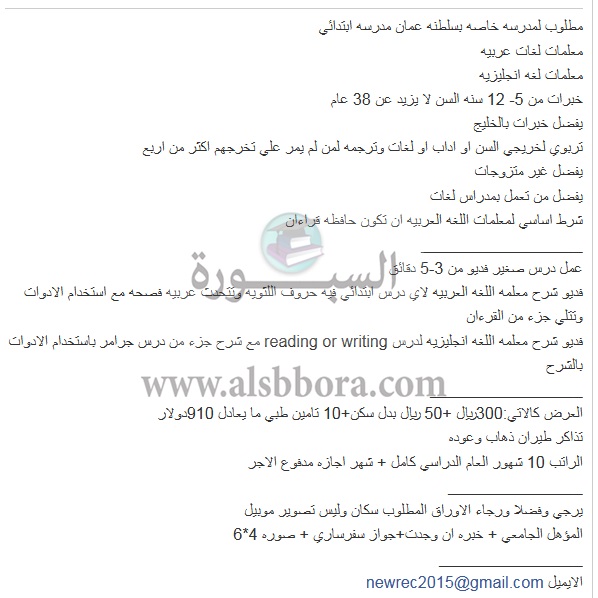 تعلن مدارس سلطنة عمان عن وظائف جديدة للمعلمين والمعلمات وذلك وفقا لنص الإعلان التالي: