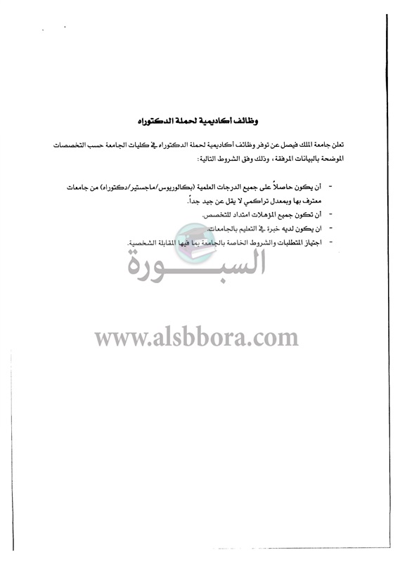 تعلن جامعة الملك فيصل عن وظائف جديدة لأعضاء هيئة التدريس المصريين في 16 كلية "من معيد إلي أستاذ" وذلك وفقا لنص الإعلان التالي:-