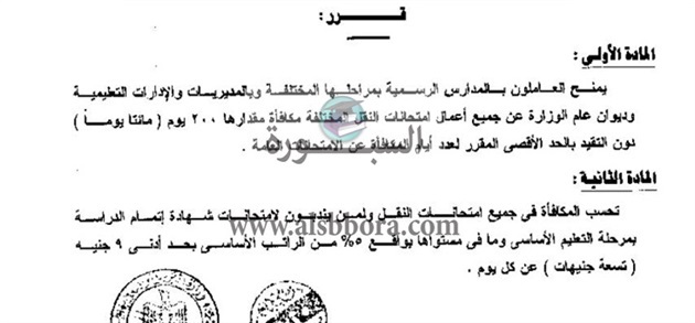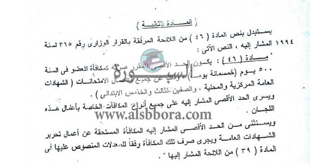 تنشر "السبورة" القرار الخاص باحتساب مكافآت الامتحانات للمعلمين فى 2019 "مستندات" بحد أدني 9 جنيهات لليوم