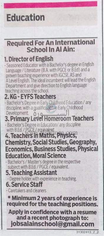 عاجل| مدارس العين الإماراتية تعلن عن وظائف جديدة للمعلمين والمعلمات.. ننشر نص الإعلان