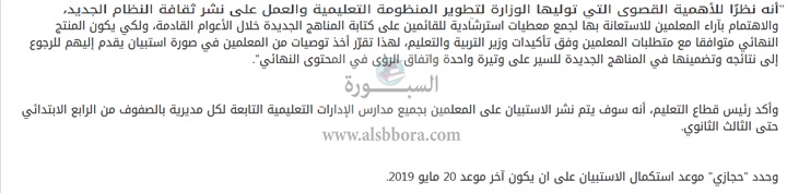 حيث تضمن الخطاب دعوة جميع المعلمين على مستوى جمهورية مصر العربية الدخول على رابط هذا الموقع على ان يكون آخر موعد للدخول 20 مايو الجارى، https://www.surveymonkey.com/r/egypt_curriculum.