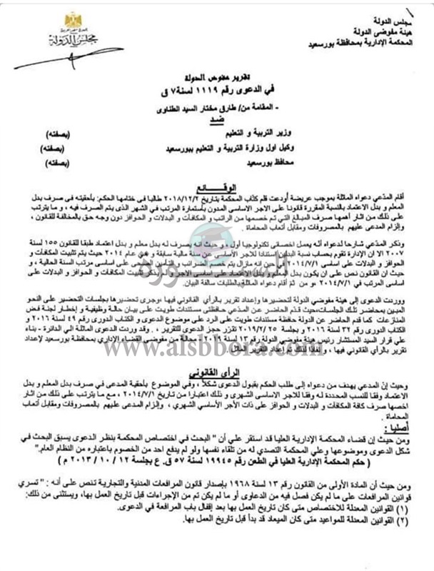 نشر نشطاء التعليم صورة من حكم محكمة منصوبة الى مجلس الدولة على موقع التواصل الاجتماعى بأحقية صرف المعلمين المكافآت والبدلات على اساسى 2019، وجاءت صورة الحكم كالتالى: