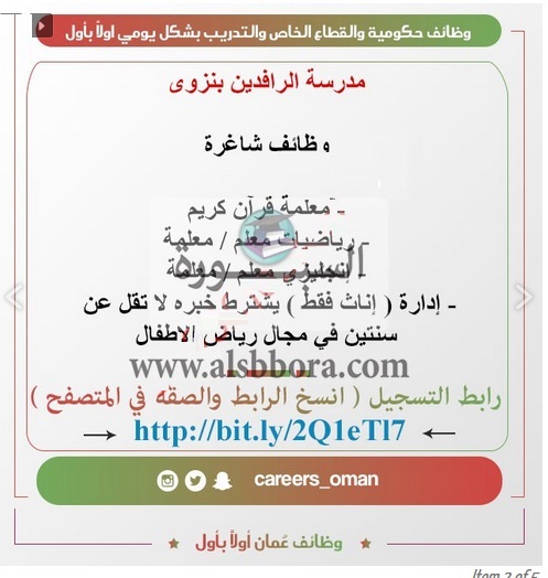 تعلن مدرسة خاصة بسلطنة عمان عن وظائف جديدة للمعلمين والمعلمات وذلك وفقا لنص الإعلان التالي:-