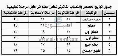 جدول توزيع الحصص والنصاب القانونى لكل معلم فى كل مرحلة تعليمية 2020/2019