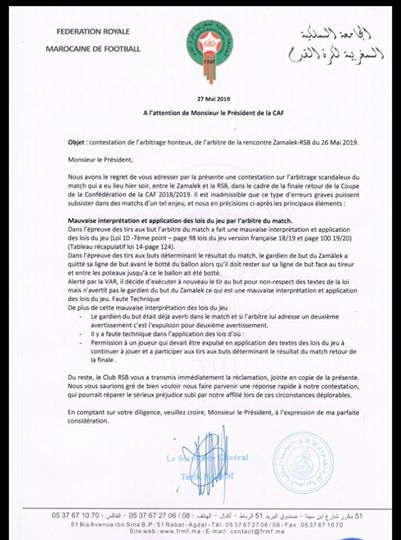 اعلن الاتحاد المغربي لكرة القدم، عن تقديم شكوى رسمية للاتحاد الإفريقي لكرة القدم ،ضد حكم المباراة الإثيوبي باملاك تيسيما.