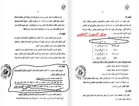 وهو الامر الذى لم يكن يخطر ببالهم على الاطلاق ان يتم تقييم ادائهم باقل من كفء وهو الامر الذى اسند فيه الامر للسادة مديرو المدارس الذين عند علمهم بامر الخصم اكدوا فى غالبيتهم انهم لم يكونوا على علم بان للتقرير دور فى تخفيض راتب المعلمين حديثى التعيين وانهم لو علموا ذلك ما كانوا خفضوا تقاريرهم فهم يعلمون كعرف سائد لا قانون له ان المعين حديثا يجب الا ينال مرتبة كفء من عامه الاول لكنهم للامانة ابدى الكثيرين منهم مرونة شديدة فى عدم الممانعة على تعديل التقارير لصالح المعلمين.