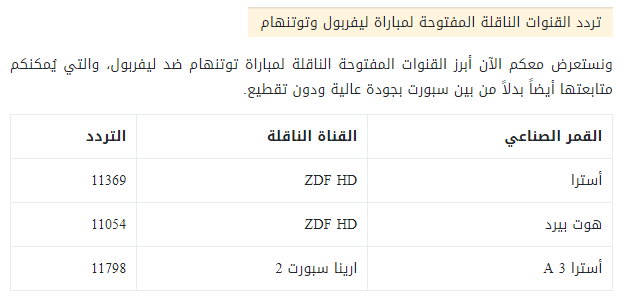 ويستعرض موقع السبورة تردد القنوات المفتوحة للقاء ليفربول وتوتنهام فى نهائى دورى ابطال اوروبا.