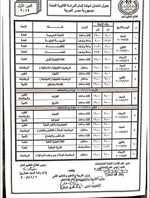التعليم تحدد ايام الاجازات فى امتحانات الثانوية العامة.. تعرف عليها