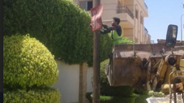 جهاز مدينة 6 أكتوبر يُنفذ عدة حملات لإزالة الإعلانات المخالفة بالمدينة
