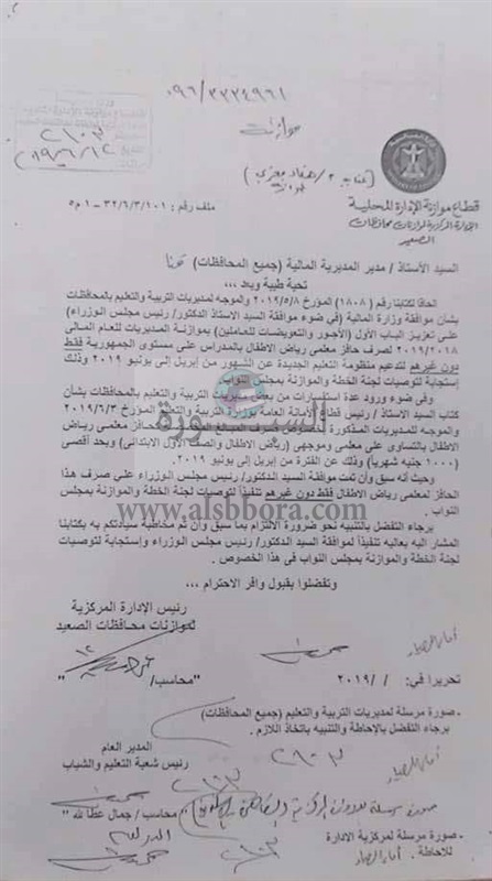 ارسلت وزارة المالية خطابا الى جميع مديرى الماليات بمديريات التربية والتعليم على مستوى الجمهورية بشأن حرمان معلمى الصف الاول الابتدائى من حافز الاثابة التى وافق عليه رئيس مجلس الوزراء.
