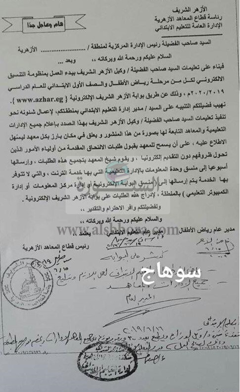 بيان عاجل من الازهر بشأن التقديم فى رياض الاطفال والصف الاول الابتدائى 2020/2019