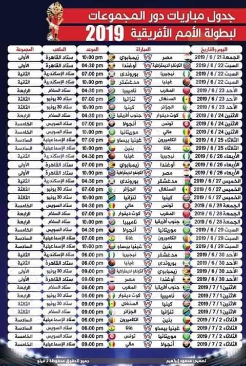جدول مباريات ببطولة امم افريقيا 2019.. ومواعيد المباريات