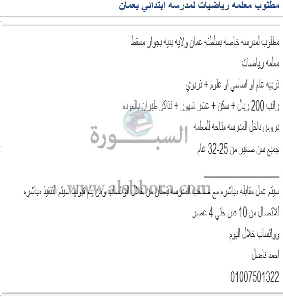 تعلن مدرسة خاصة في سلطنة عمان عن وظائف جديدة للمعلمين والمعلمات وذلك وفقا لنص الإعلان التالي: