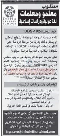 تعلن مدرسة الدوحة القطرية عن وظائف جديدة للمعلمين والمعلمات وذلك وفقا لنص الإعلان التالي :