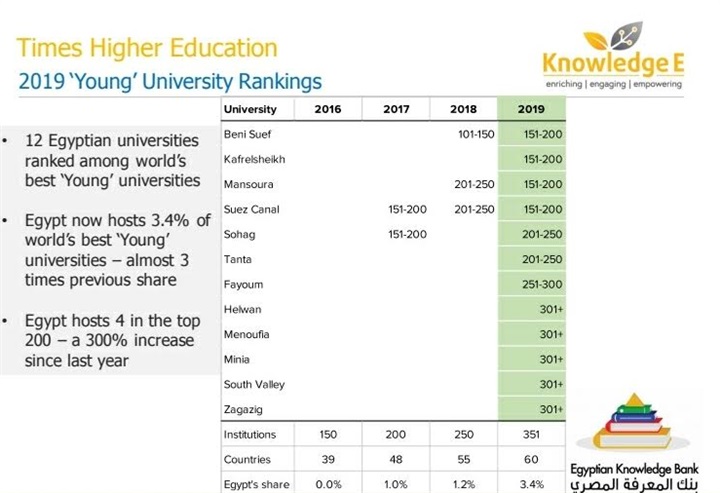 التعليم العالى: زيادة عدد الجامعات المصرية الناشئة فى تصنيف التايمز البريطانى Times Higher Education إلى 12 جامعة