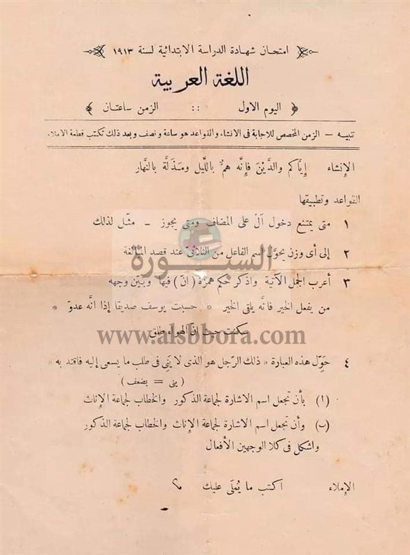 والذى حصلت عليه " السبورة " عام 1913 ،ولو فعلاً هذا هو إمتحان الإبتدائية