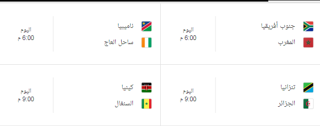 في المجموعة الرابعة يواجه منتخب المغرب نظيره جنوب إفريقيا وفي نفس الموعد تلعب كوت ديفوار مع ناميبيا.