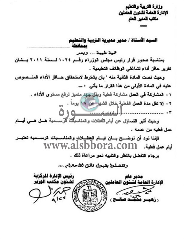 ننشر قرار وزارة التربية والتعليم بشأن شروط صرف الحافز للمعلمين كيفية احتساب أيام العطلات الرسمية
