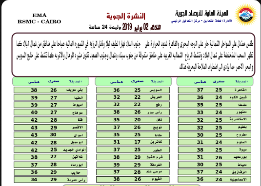 وفيما يلي بيان بدرجات الحرارة المتوقعة اليوم على محافظات ومدن مصر