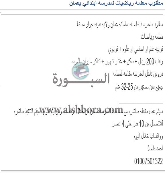 تعلن مدرسة خاصة في سلطنة عمان عن وظائف جديدة للمعلمين والمعلمات وذلك وفقا لنص الإعلان التالي: