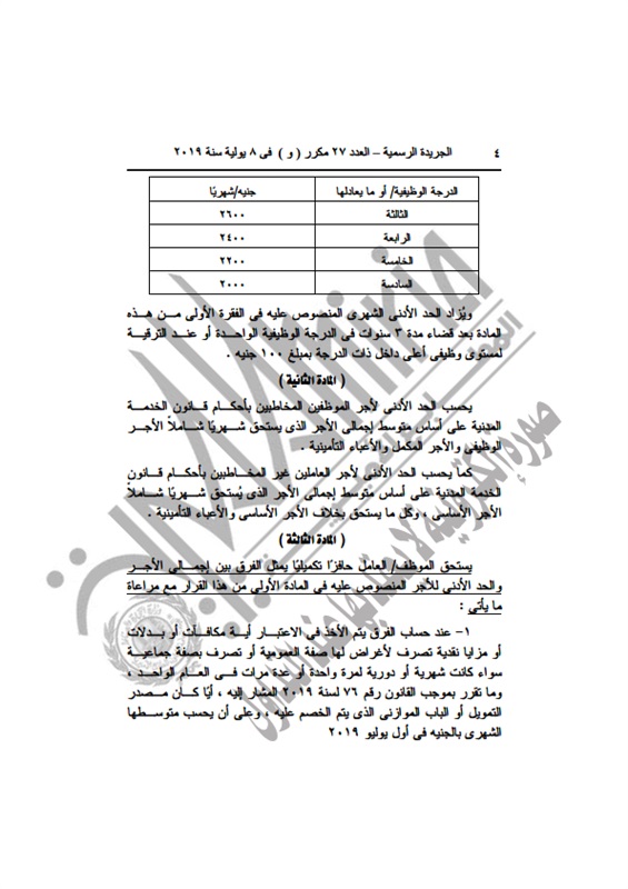 ننشر نص قرار الحد الأدنى للمرتبات طبقا للجريدة الرسمية