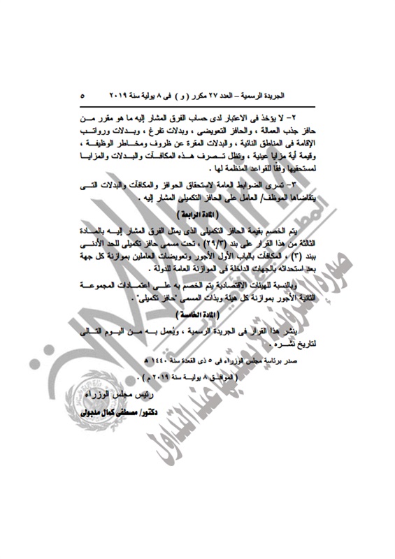 ننشر قرار الحد الادنى الذى نشر بالجريدة الرسمية الوقائع بعد صدور قرار الدكتور مصطفى مدبولي، رئيس مجلس الوزراء، والذى يقضي بتقرير الحد الأدنى للموظفين والعاملين لدى أجهزة الدولة، والهيئات العامة الاقتصادية، اعتباراً من أول يوليو 2019 .