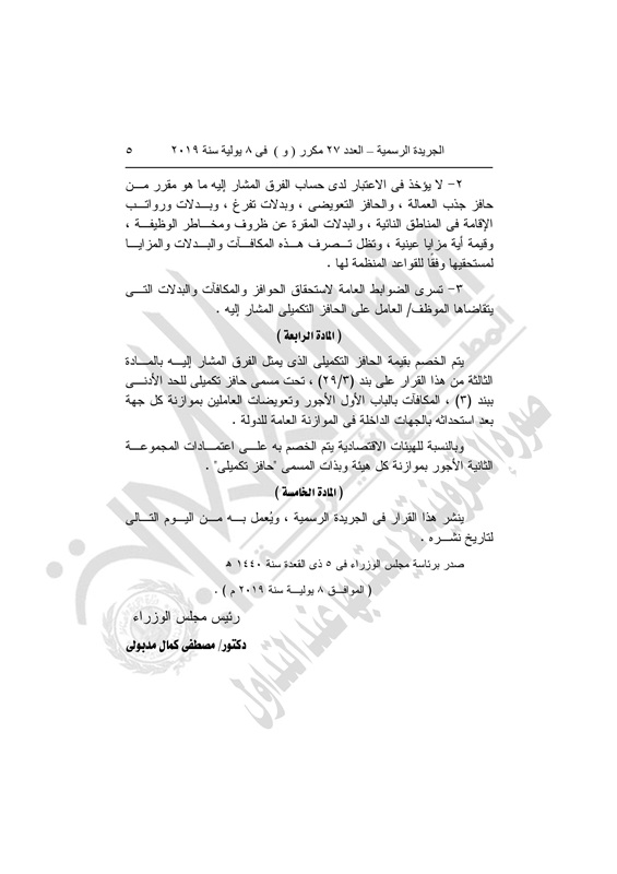 كما تضمن القرار صرف حافز تكميلي للموظف أو العامل، يمثل الفرق بين إجمالي الأجر الذي يتم الحصول عليه وبين الحد الأدنى المقرر له.