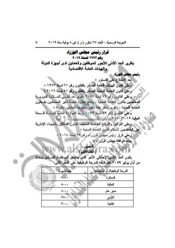 الحد الادنى وماصدر وتم تحريره بالفعل مع مرتبات شهر يوليو هى العلاوات والتى صدرت