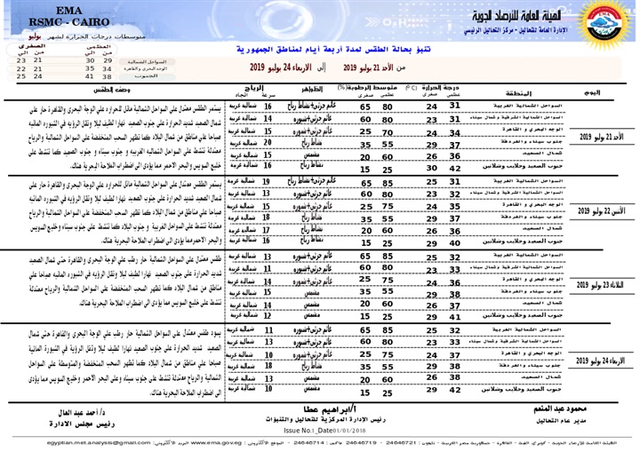 وأضاف عبد العال خلال مداخلة هاتفية للتليفزيون المصري عبر القناة الأولى، أن درجات الحرارة لن تتجاوز 38 درجة مئوية حتى نهاية الأسبوع الجاري، مشيرًا إلى أنه من الملاحظ وجود ارتفاع في نسبة الرطوبة.