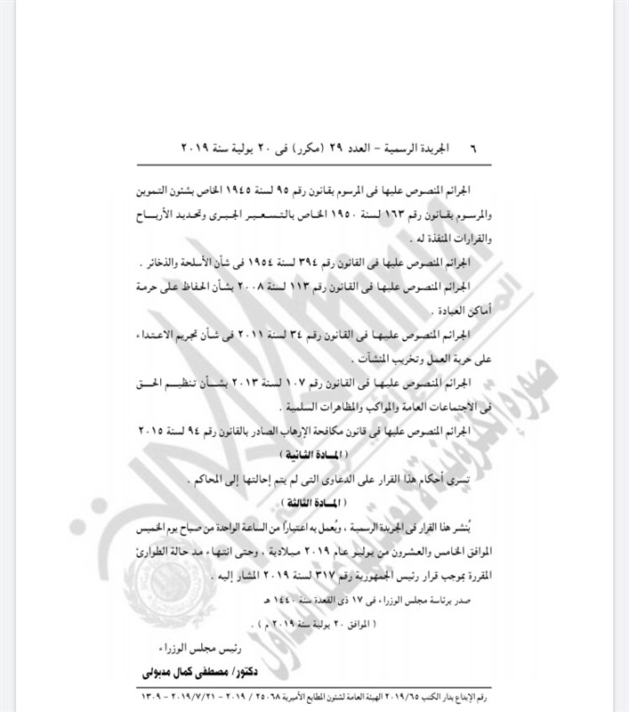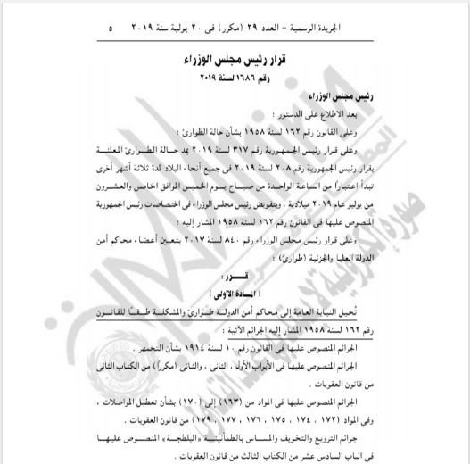 الجريدة الرسمية تنشر قرار رئيس الوزراء بفرض حظر التجوال