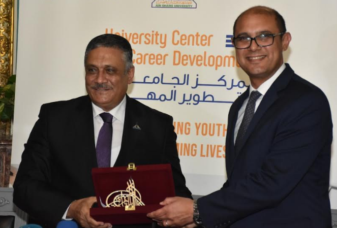 و أكد أنه سيقوم فريق عمل الجامعة الأمريكية بتدريب وتأهيل موظفي مركز جامعة عين شمس كميسرين مهنيين قادرين على تقديم خدمات التوجيه المهني لطلاب الجامعة.