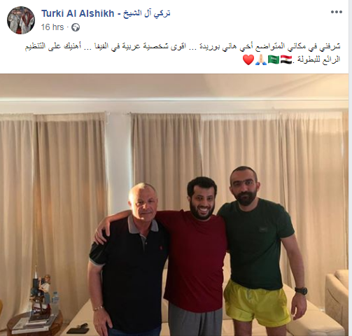 قام تركي آل الشيخ مالك نادي بيراميدز المصري السابق، ورئيس هيئة الترفيه السعودية بنشر صورة عبر صفحته الرسمية في "فيسبوك"،والتى اتت بردود افعال سلبية بين الجمهور المصري .