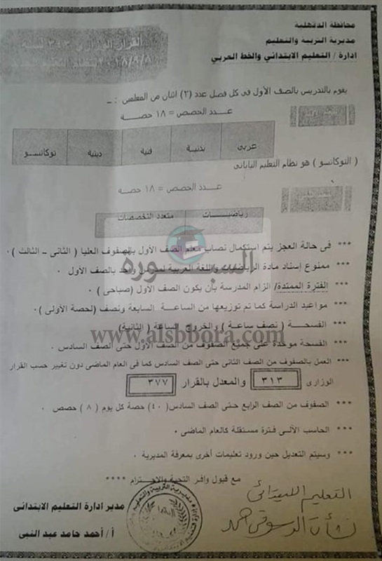 عاجل| النصاب القانوني للمعلمين في النظام الجديد :" 18 حصة للمعلم ..وتوحيد الفسحة لجميع الصفوف.. وحظر اسناد الرياضيات والعربي لمدرس واحد".. "مستند"
