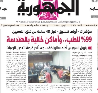 نشرت جريدة "الجمهورية" المؤشرات الرسمية لتنسيق 2019، والذي تضمن 99% لكلية طب ووجود أماكن خالية بكلية الهندسة، مشيرة إلي أن غدا أخر فرصة لتعديل الرغبات