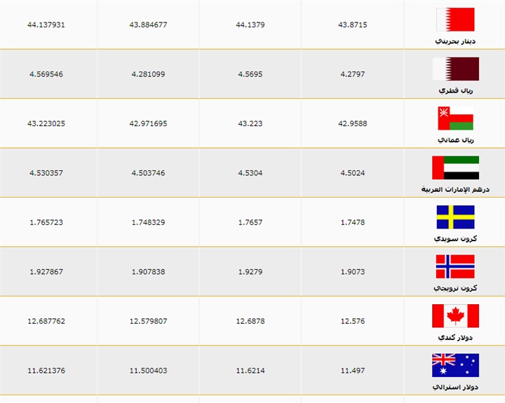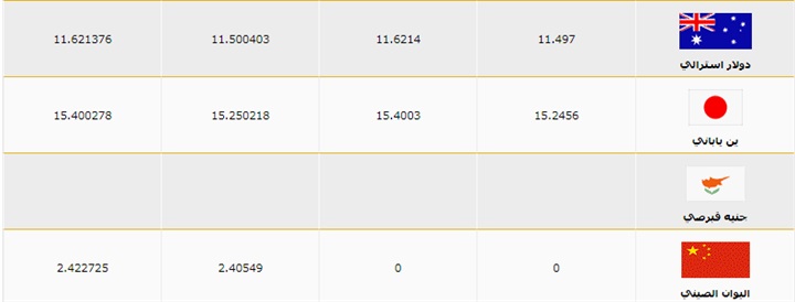 بيان باسعار العملات الاجنبية والعربية فى ختام معاملات اليوم الخميس 7/25