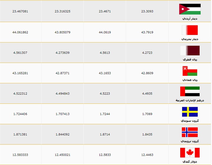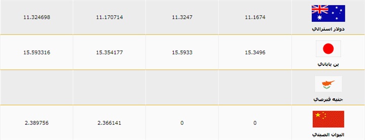 بيان باسعار العملات العربية والاجنبية فى مستهل معاملات اليوم الاثنين الموافق 5 اغسطس