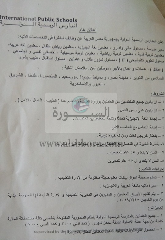 تعلن المدارس الرسمية الدولية بجمهورية مصر العربية التابعة لوزارة التربية والتعليم والتعليم الفنى عن وظائف شاغرة للمعلمين المعينين عن طريق النقل والانتداب.