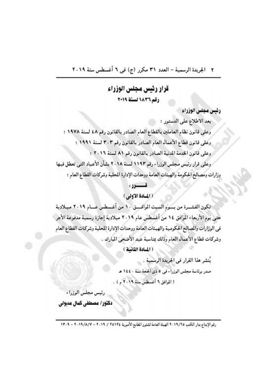 وجاء قرار الدكتور مصطفى مدبولي، رئيس مجلس الوزراء، يقضي بتقرير الحد الأدنى للموظفين والعاملين لدى أجهزة الدولة، والهيئات العامة الاقتصادية، اعتباراً من أول يوليو 2019.