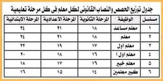 ننشر توزيع نصاب الحصص الجديد للمعلمين فى جميع المراحل التعليمية 2020/2019