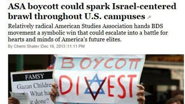 قررت رابطة محاضري الجامعات الأمريكية التي تضم نحو 5000 استاذ جامعي فرض مقاطعة اكاديمية على إسرائيل احتجاجا على سياستها تجاه الفلسطينيين . ووفق ما نشرت وكالة الانباء الفلسطينية الرسمية "وفا" فقد جاء في قرار الرابطة المتخصصة في دراسة تاريخ وثقافة الولايات المتحدة ان إسرائيل تنتهك القانون الدولي وحقوق الانسان وتتجاهل القرارات الاممية .