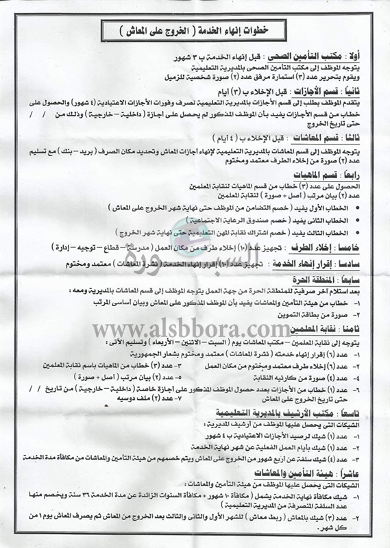 كشفت وزارة التربية والتعليم والتعليم الفنى الخطوات التى يجب ان يتبعها المعلمون فى حالة الخروج على المعاش، حيث اعلنت عن 10 خطوات ننجزها من خلال الخطاب التالى: