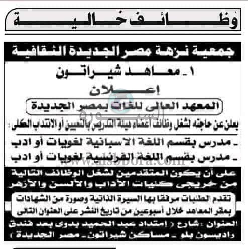 اعلن المعهد العالى للغات بمصر الجديدة عن توافر عدد من الوظائف لاعضاء هيئة التدريس وفقا للاعلان التالى: