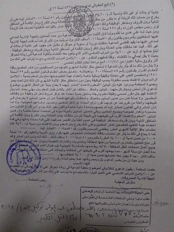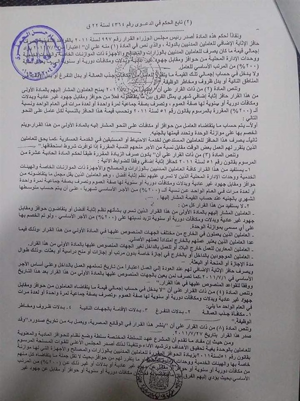 ننشر لكم حكم محكمة القضاء الإداري بمجلس الدولة بالإسماعيلية بأحقية المعلمين في حافز إثابة ٢٠٠ % من الأجر الأساسي لهم إعمالاً للمرسوم بقانون رقم (٥١) لسنة ٢٠١١ بربط الموازنة العامة للدولة لسنة ٢٠١١/ ٢٠١٢ وبتعديل بعض أحكام قانون الضريبة على الدخل
