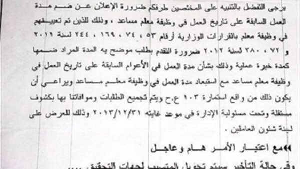 انفراد ..تعليم المنيا تقررضم سنوات الخبرة للمعلمين العاملين بالقرارات 74 ،53 244 ،169