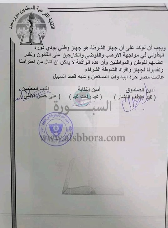 تنشر "السبورة" نص بيان نقابة المعلمين بشأن واقعة الأعتداء علي معلمة بورسعيد والذي تضمن الآتي: